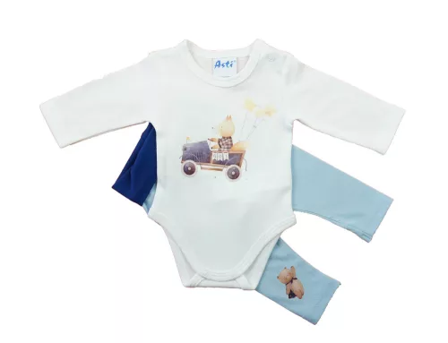 Varázsolja vidámmá a mindennapokat ezzel a bájos 2 részes baba szettel, amelyet aranyos állatos minta díszít. A praktikus és kényelmes összeállítás minden kisbaba ruhatárának kedvenc darabja lesz – akár otthon, akár sétához vagy látogatáshoz.