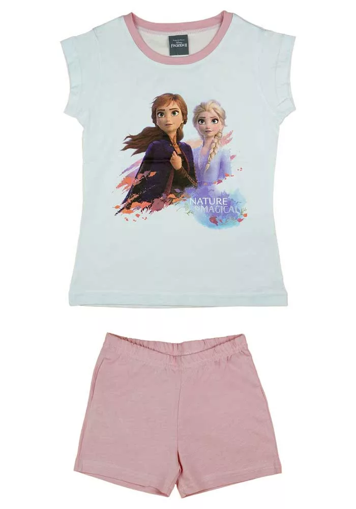 2 részes nyári szett Jégvarázs mintával fehér és púder színben