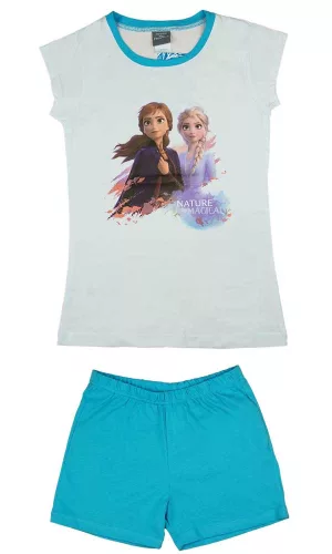 2 részes nyári szett Jégvarázs mintával fehér és kék színben