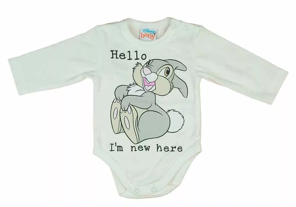 Édes kisbabádnak stílust és kényelmet biztosít ez a 3 részes baba szett, melyet a bájos Thumper nyuszi minta díszít. A világoskék színű hosszú ujjú body vállon elhelyezett patentos kialakítása könnyű öltöztetést biztosít. A belül bolyhos, Thumper nyuszi mintával ellátott baba nadrág pedig az édes álmokat garantálja. A szettet egy szintén belül bolyhos, puha baba sapka teszi teljessé, mely melegen tartja a kicsi fejét. Minden darabja 100% pamutból készült, kivéve a nadrág és a sapka, melyek 90% pamut és 10% elasztán keverékéből születtek. Minőségi magyar termék, melyet az Andrea Kft. gyártott, Magyarországon. A termékben használt patent nikkelmentes, így az erre érzékeny babák bőre sem irritálódik. Ezzel a szettel édes kisbabád igazi Disney herceg vagy hercegnő lehet!