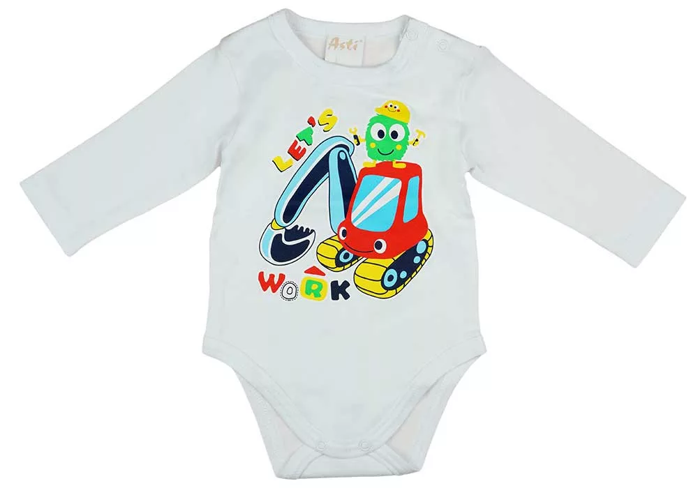 Fedezd fel ezt a 3 részes baba szettet, amely munkagépes mintával készült! A szett hosszú ujjú baba bodyból, baba sapkából és baba nadrágból áll, mindegyik darabon vidám munkagépes minta található, amely garantáltan elvarázsolja kisfiadat. A vállon patentos body könnyen fel- és leölthető, így a pelenkázás gyors és egyszerű lesz. A baba sapka munkás manós mintával készült, ami szuper cuki és mókás. A nadrág kényelmes és rugalmas, így tökéletes lesz az aktív és mozgékony kisfiúknak.
