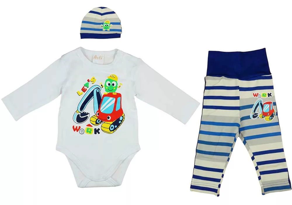 3 részes baba szett munkagépes mintával
