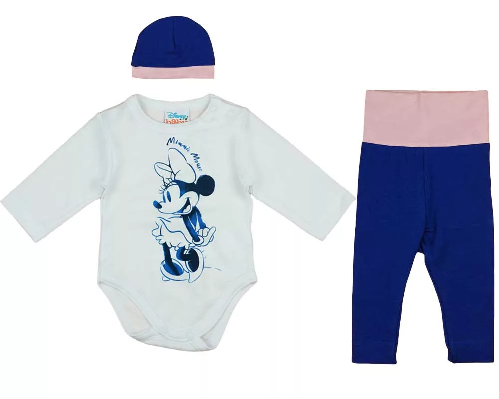 3 részes kislány baba szett Minnie egér mintával fehér és kék színben