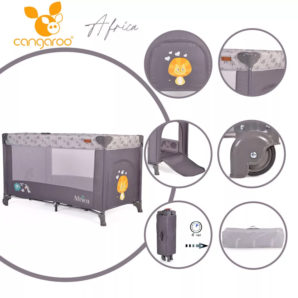 Moni Cangaroo africa 1 szintes utazóágy 14 kg-ig szürke
