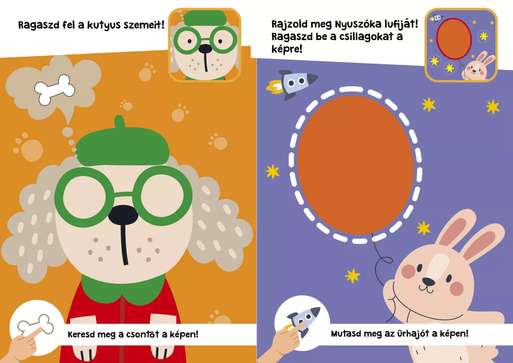 A füzetben található nagy méretű matricák segítik a könnyű használatot, így a kis kezek is ügyesen boldogulnak a ragasztással. A játékos gyakorlatok támogatják a figyelem, a koncentráció, a finommotorikus készségek és a kreativitás fejlődését, miközben önfeledt szórakozást biztosítanak.