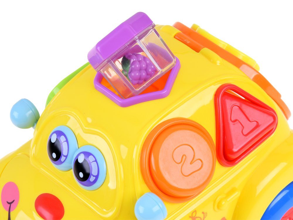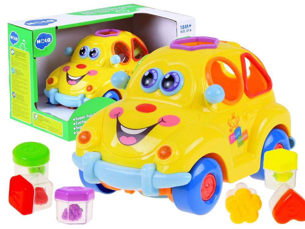 Az autónak számos funkciója van. A játékot a motoros koordináció fejlesztésére és gyermeke kíváncsiságának felkeltésére tervezték. A különféle alakú tömböknek köszönhetően, amelyeken belül gyümölcs figurák vannak (eper, narancs, alma, szőlő, banán, citrom), a kicsi megtanulja megkülönböztetni nemcsak a formákat, hanem a gyümölcsöket is.