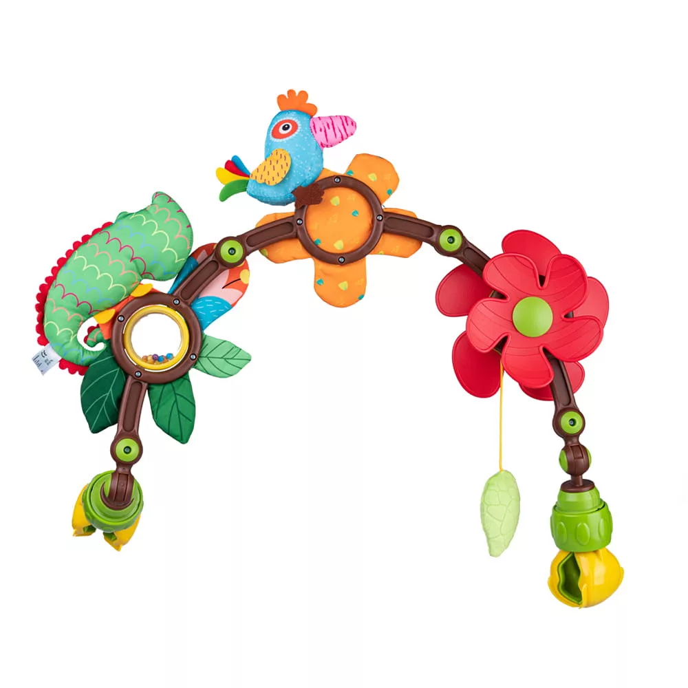 A BALI BAZOO színes játékív állatos 80417 egy szórakoztató és izgalmas játék, amely minden gyermek szobájának kitűnő kiegészítője lehet. Ez egy tökéletes választás a kisállat rajongó gyerekeknek, hiszen a játékív vidám állatfigurákat ábrázol. A termék része egy saját tervezésű láb- és kézszobor készítő készlet az ÉnSzobrom márkától, egy krémszínű játéksáv a Bali Bazoo-tól, valamint egy szivárvány hajlított játék, amelyen egy kaméleon található a Balibazoo-tól. A színes, élénk színek és a különböző textúrák ösztönzik a gyermek érzékelését és finommotoros képességeinek fejlődését. Vigyázz, a kaméleon álcája olyan jó, hogy alig lehet észrevenni!