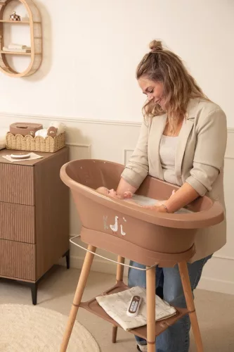 A baba fürdetése a kedvenc esti rituálék közé tartozik, melyen gyakran az egész család részt vesz. Az állványra rögzített babakád segítségével a fürdetés történhet egyenesen a gyerekszobában és a kicsit nem kell sehová sem hordani. Az állvány és a babakád így a szoba részévé válik és pozitívan befolyásolja a szobáról keltett benyomást. A Bébé-jou Sense állvány erősíti ezt a benyomást a műanyag és bükkfa kellemes kombinációjával. A babakád és tartozékai certifikált anyagokból készültek és színben tökéletesen kombinálhatók.