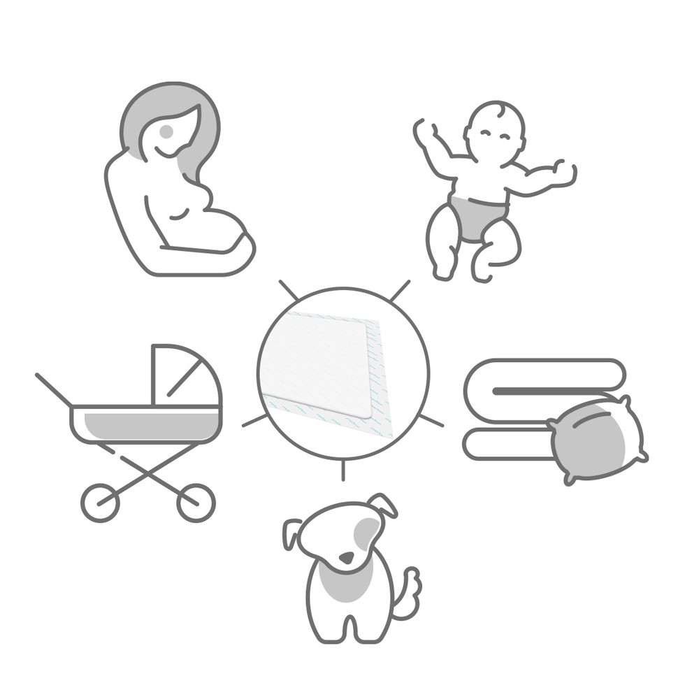 Az eldobható baba pelenkázólap nagy segítséget jelent a baba pelenkázásában, és a nõk a szülés utáni idõszakban is használhatják. Kivételesen nedvszívó párnák biztosítják a kényelmet és a higiéniát. A külsõ mûanyag réteg védi a bútorokat a szennyezõdéstõl, míg az öntapadó csíkok a helyükön tartják a lapot. Az alátét belsejében található szuperabszorbens anyag gyorsan megköti a nedvességet, semlegesítve a kellemetlen szagokat.