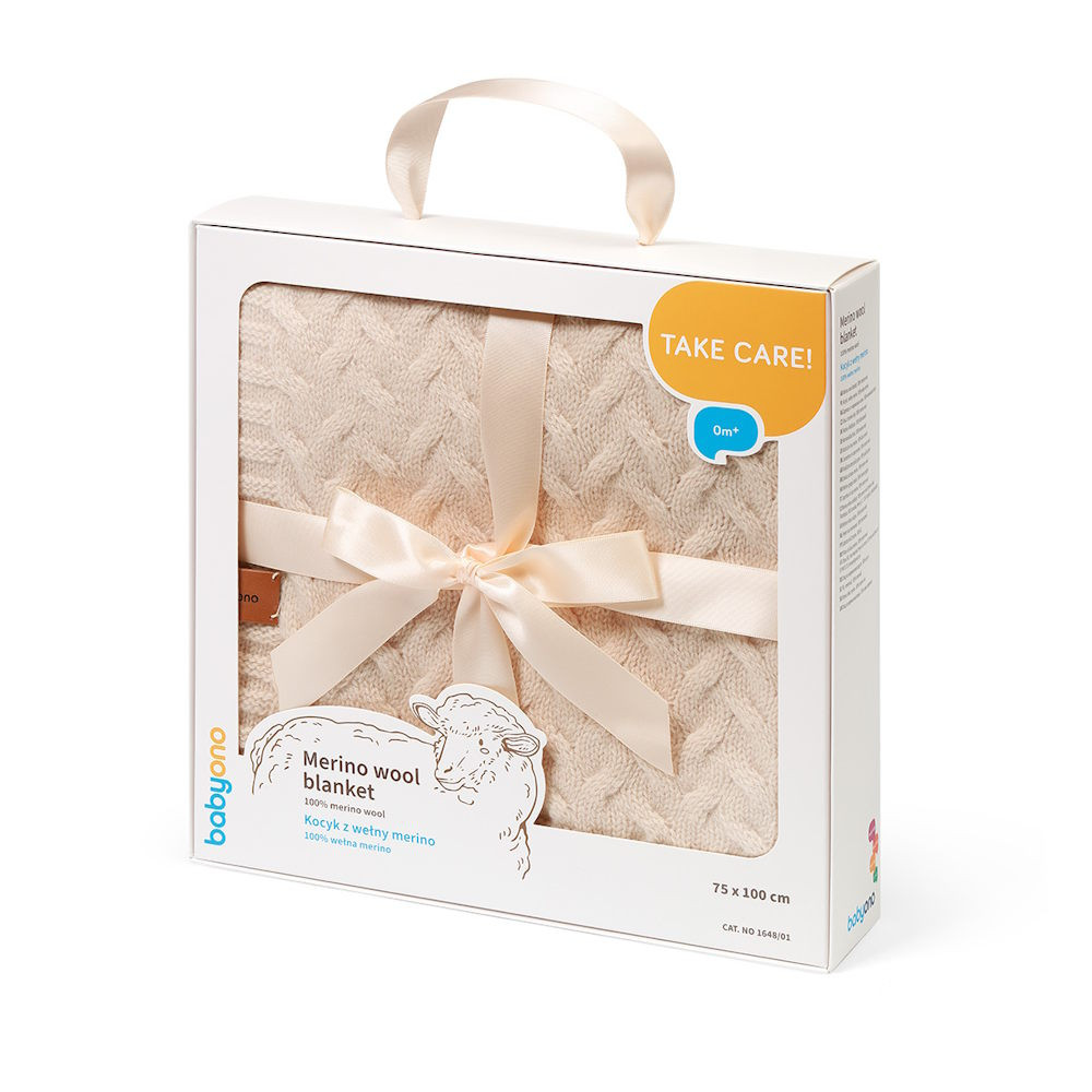 BabyOno babatakaró merino gyapjú kötött 75x100cm világos bézs 1648/01