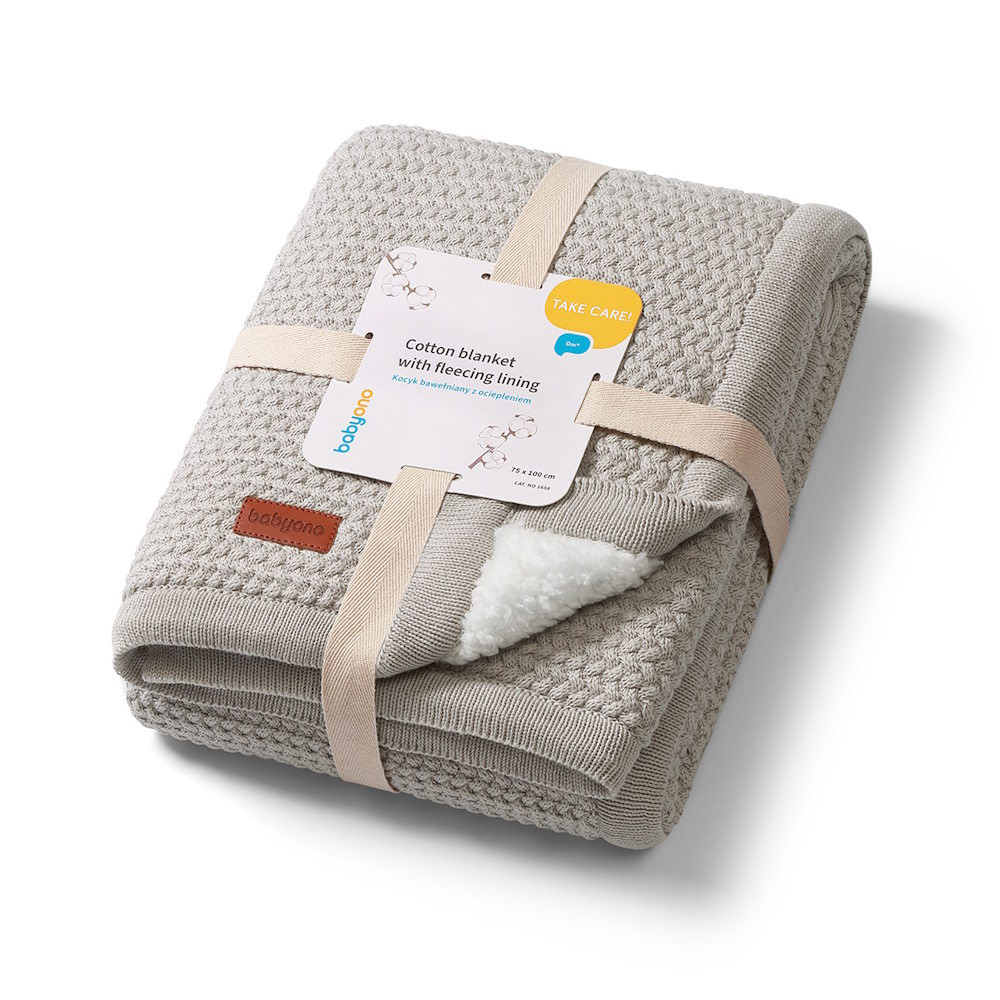 BabyOno babatakaró pamut/sherpa kötött 75x100cm szürke 1658