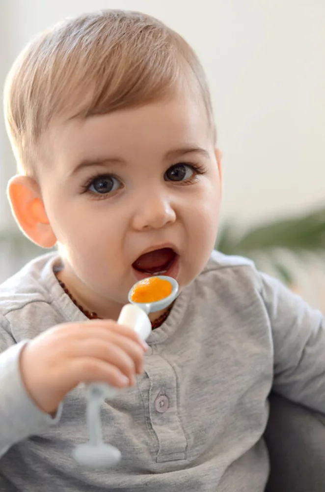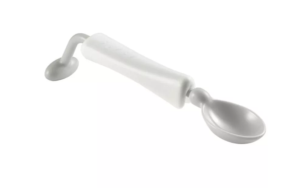 • Forgó nyél: lehetővé teszi, hogy a kanál mindig vízszintesen maradjon, és megakadályozza, hogy a gyermek kiborítsa a kanál tartalmát, ha rosszul tartja a nyelet.