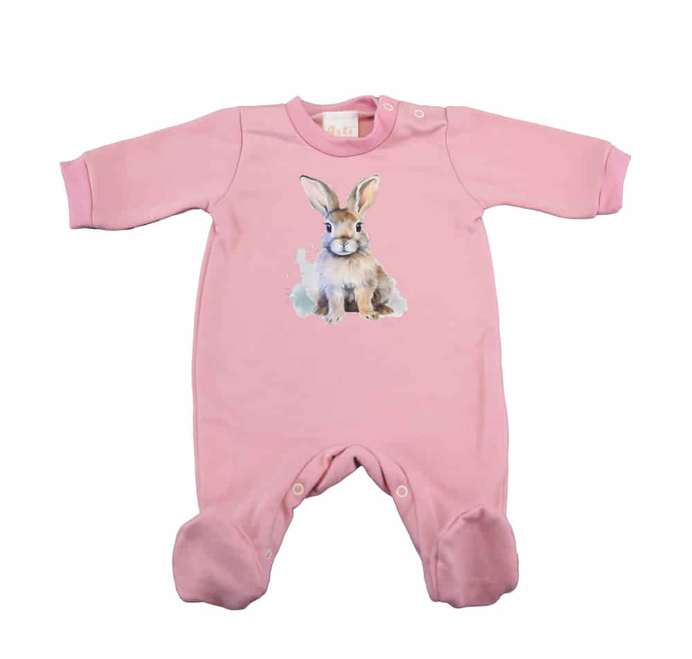 Kényelmes és nagyon cuki ez a hosszú ujjú baba rugdalózó elején aranyos Nyuszi mintával. Belül bolyhos bababarát anyagból készült, kényelmes viseletet biztosítva egész napra. Vállán patentos, így megkönnyíti a picik öltöztetését. A lába közötti patentos megoldás a peluscserénél nagy segítség. Jól mosható, szín- és formatartó anyagból készült.