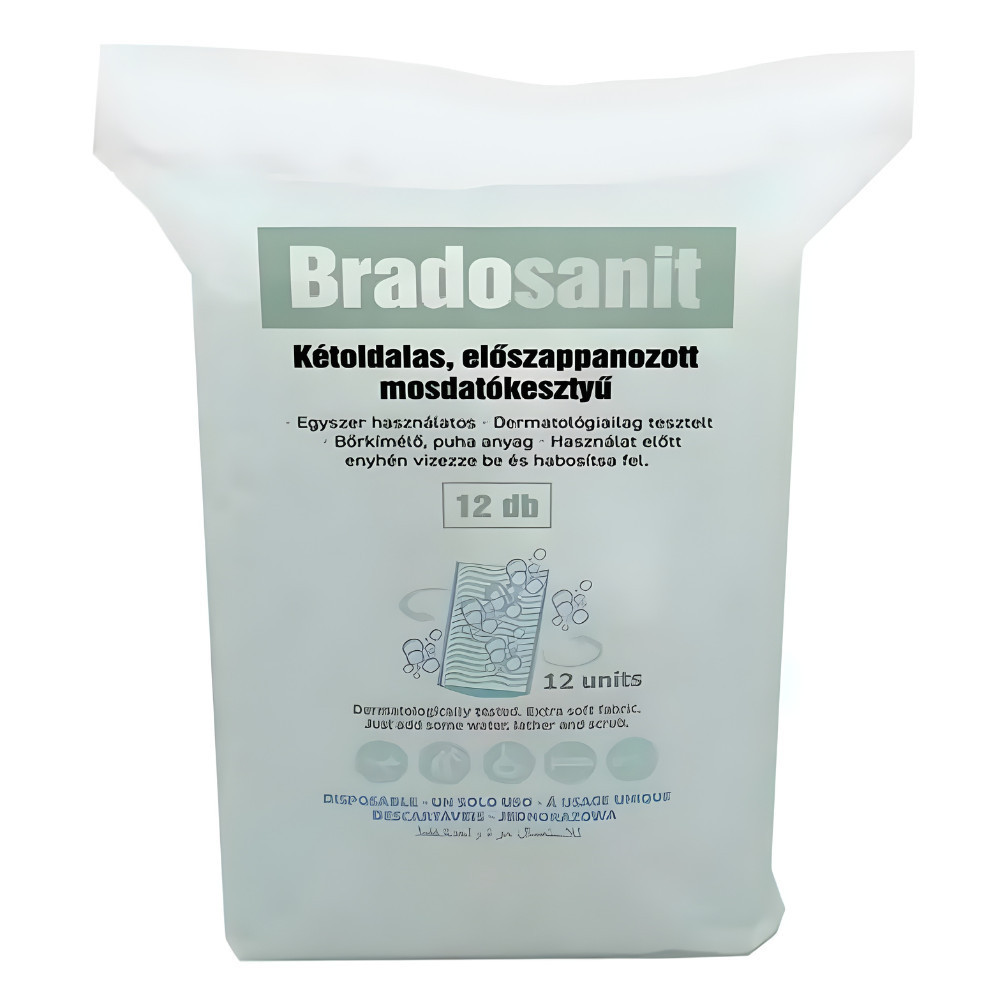A Bradosanit előszappanozott mosdatókesztyű gyengéd és higiénikus tisztálkodást tesz lehetővé víz és szappan nélkül. Ideális betegápoláshoz, utazáshoz vagy bármilyen helyzetben, ahol a hagyományos fürdés nem megoldható.