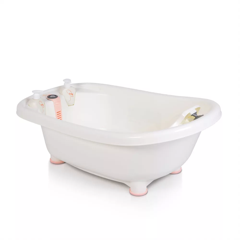 A Bubble kád pink egy 3 az 1-ben kialakítású, praktikus és otthonos megoldás a fürdéshez. A kád méretei 90 x 43 cm, ami tökéletes méret a kisbabák számára. A termékhez hozzátartozik egy beépített hőmérő is, amely segít a szülőknek ellenőrizni a víz hőmérsékletét, biztosítva a babák számára a legkényelmesebb fürdési élményt. Továbbá rendelkezik tároló rekeszekkel is, amelyekben kényelmesen elhelyezhetők a fürdéshez szükséges eszközök, például szappan, sampon, vagy játékok. A termék rózsaszín színben érhető el, így különösen alkalmas kislányok számára. A fürdőidő soha nem volt még ilyen egyszerű és élvezetes!