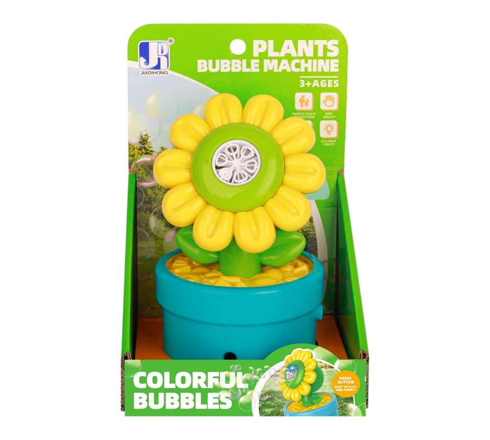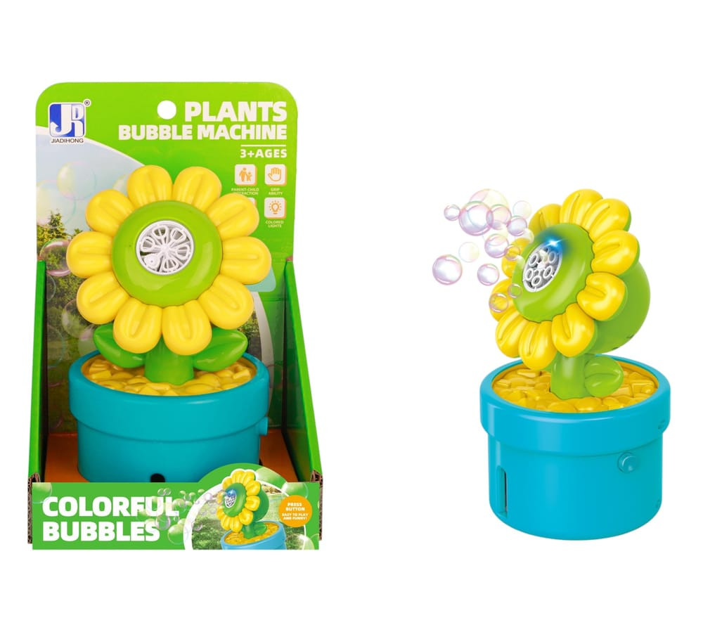 Buborékfújó, el., vil., cserepes virág forma + 80 ml-es, 14x22 cm dob.