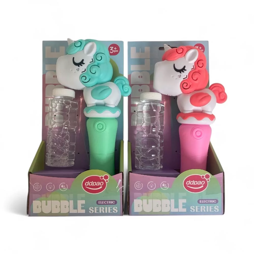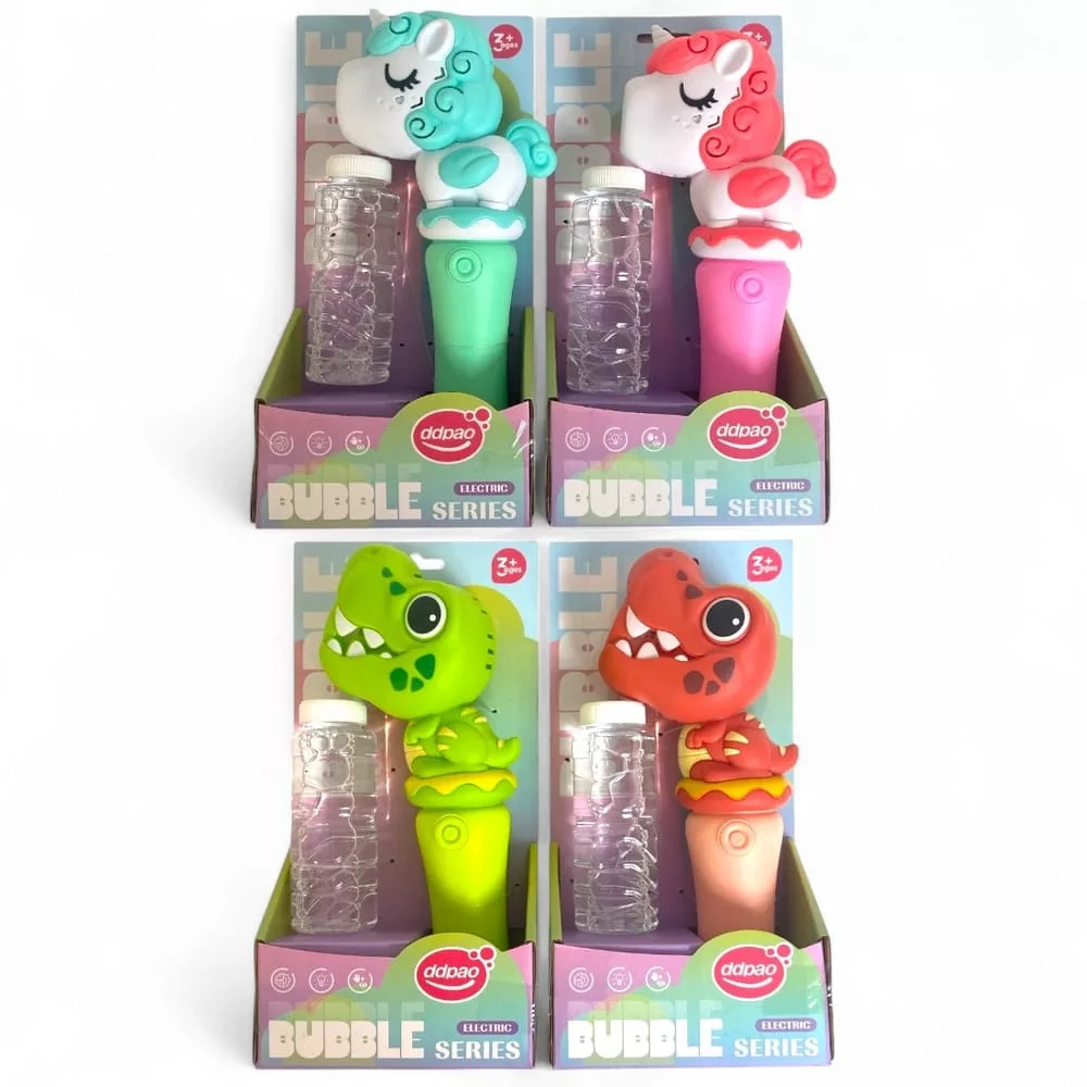 Buborékfújó klt., el., vil., dínó / unikornis forma, + 120 ml-es, 2 szín, 13x26 cm dob.