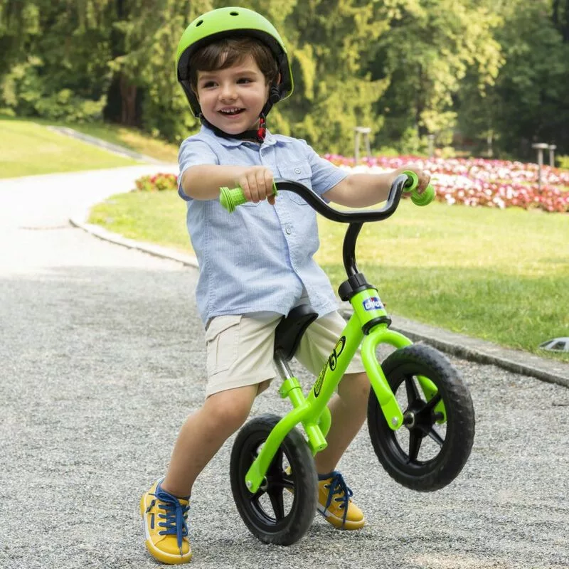 Fémvázas Chicco Green Rocket futóbicikli, 3-5 éves korra, illetve max. 25 kg testsúlyig.