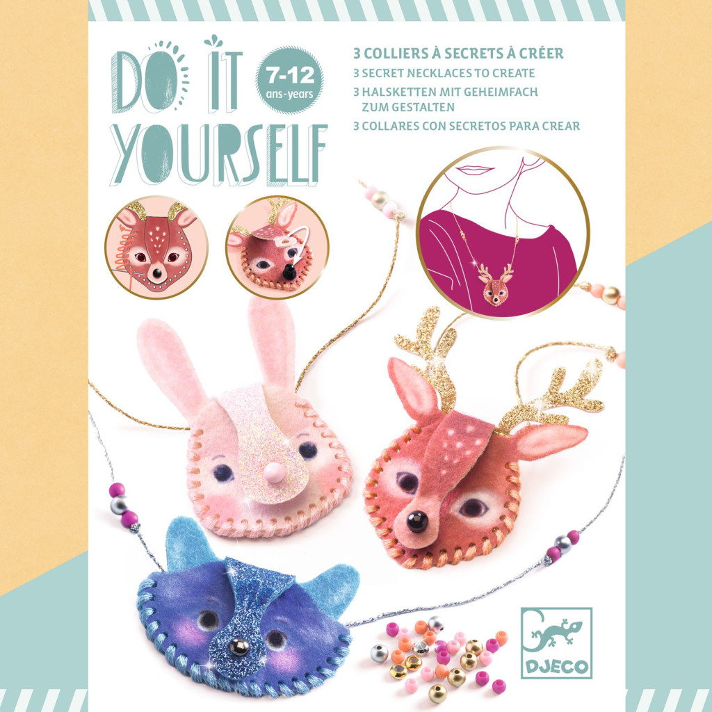 Kézműves készlet 3 káprázatos, titkokkal teli nyaklánc létrehozásához.  A részletes, lépésről lépésre szóló útmutató végigvezeti a gyerekeket az alkotás folyamatán, csinos nyakláncokat állíthatnak össze, miközben varrni is megtanulhatnak. A nyakláncok hossza a csúszókapcsok segítségével könnyen állítható. Minden lánchoz tartozik egy nyitható medál, az apró titkok, emlékek elrejtéséhez...