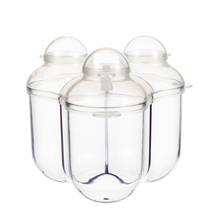 A Difrax Tejpor adagolóban egyszerre 3 adag előre kimért tejport tárolhatsz. A 3 rekesz mindegyikébe 9 kanál tejpor fér. Ha meg szeretnéd etetni gyermeked, elég az adagolóból a tejport beleszórni az előkészített vízbe.