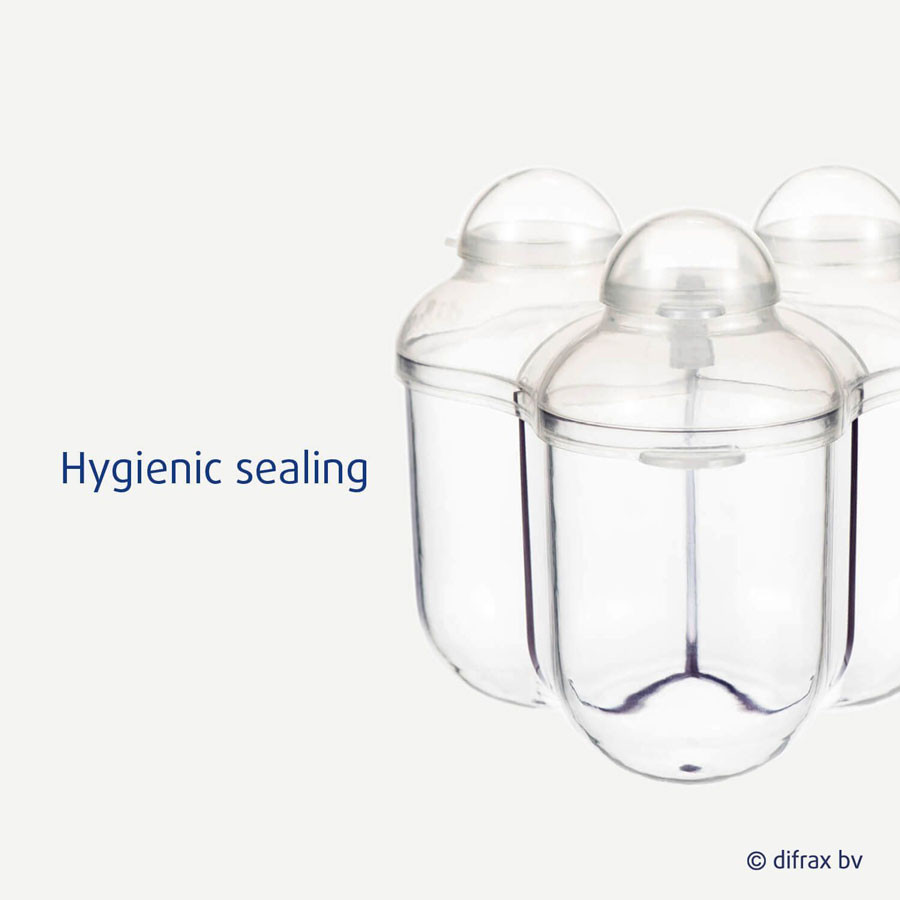 Az adagolófejek minden Difrax cumisüvegre tökéletesen illeszkednek, így szinte lehetetlen mellészórni. Akár otthon vagy utazás közben, az adagoló mindig ideális és tökéletes higiéniai feltételeket biztosít a bébiételek elkészítéséhez.