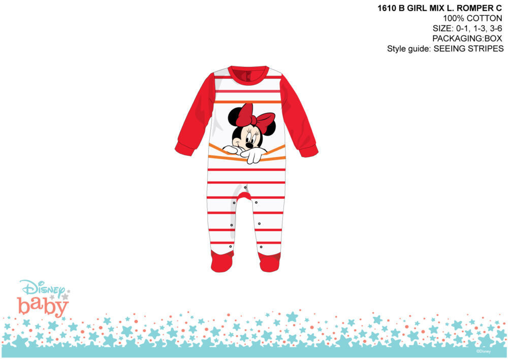 Disney Minnie egér baba rugdalózó - fehér-piros - 0-1 hónapos babának