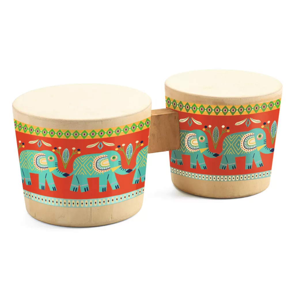 Bongó dob elefánt motívummal a Djeco Animambo játékhangszer sorozatában.