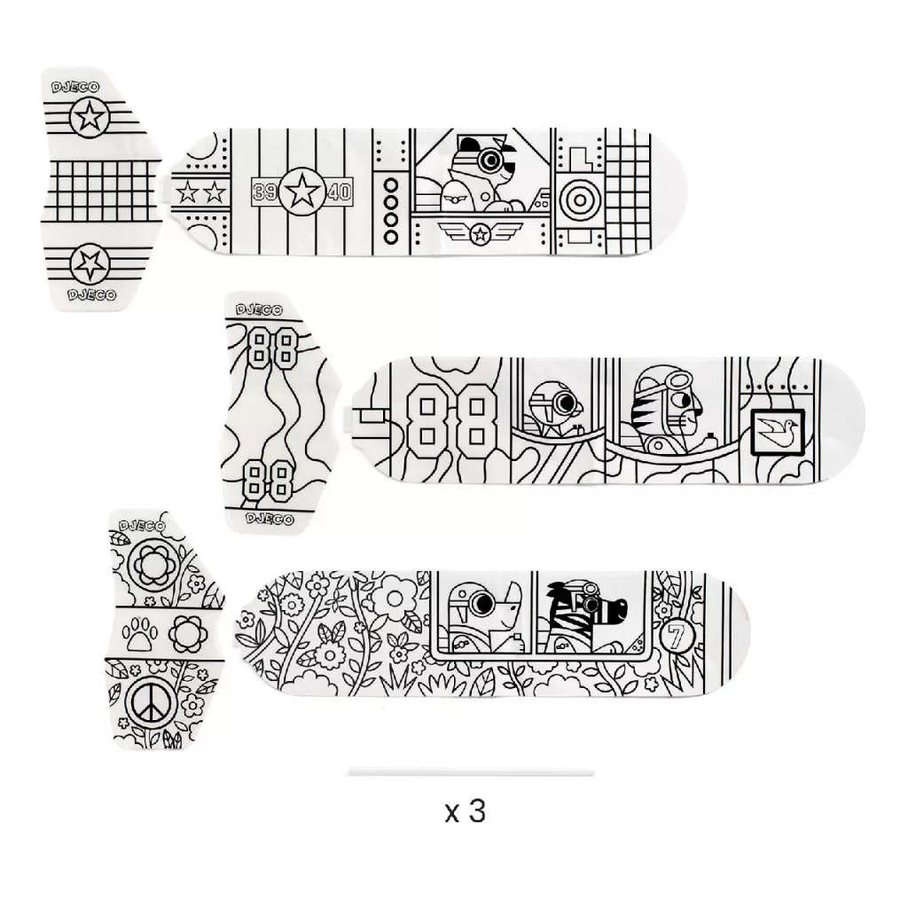 Kreatív készlet 3 felfújható repülőgépet tartalmaz, amit előbb ki kell színezni. A repülőket egyszerűen csak ki kell színezni filctollakkal, és felfújni a mellékelt szívószálakkal, már repülnek is a levegőben! A lépésről-lépésre követhető utasítások segítenek a gyerekeknek saját repülőgépeket készíteni.