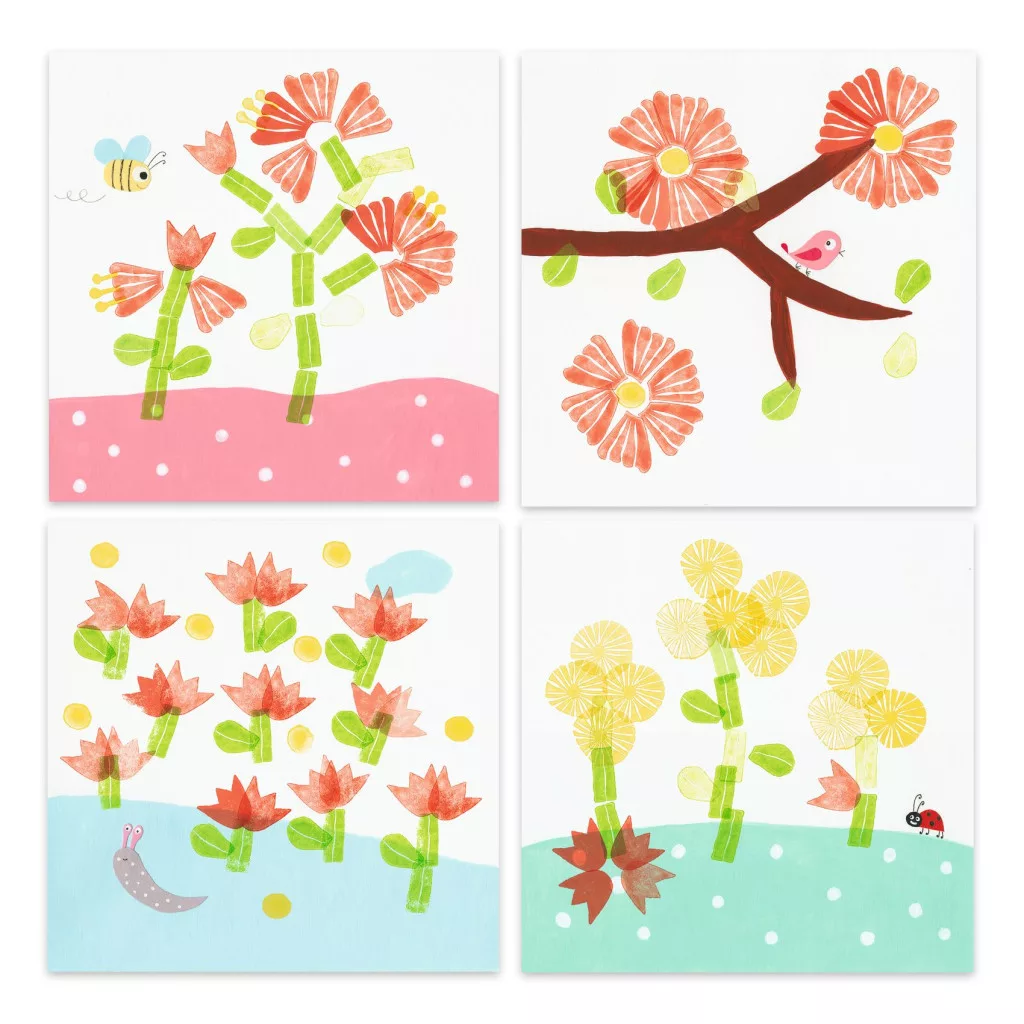 Virág és természet témájú nyomdázókészlet, ahol a gyermek szabadon díszíti a kártyákat a kedves nyomdázó illusztrációkkal. Fokozatosan befesti a nyomdázókat,  lenyomatokat készít, hogy animálja a magyarázó füzetben javasolt dekorációkat. A gyermek szórakoztatóan változtathatja a kombinációkat, szabad utat engedve képzeletének. Mindig más és más az, amit a képre nyomdáz és így a vázlatok életre kelnek!