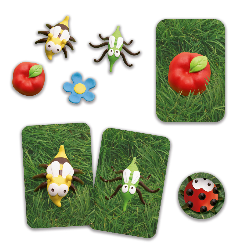 A moszkitó, a virág és a méhecske rugalmas, az alma keményebb PVC-ből készültek. A kártyalapok strapabíró kártyakartonból.