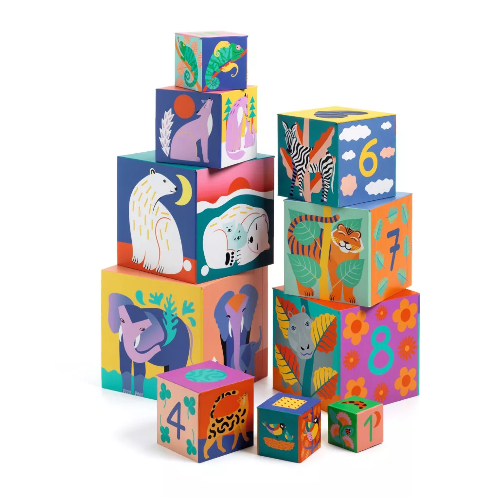 Djeco Toronyépítő kocka - Vadon élő állatok - Wild animals