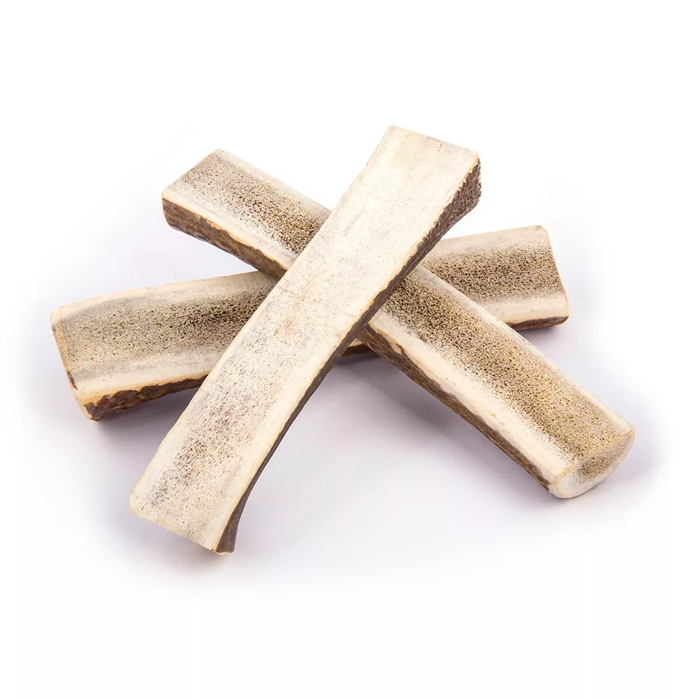- Hosszú távú tartósság. Az agancsok sokkal hosszabb ideig tartanak, mint a préselt keményítőből vagy nyers bőrből készült botok.