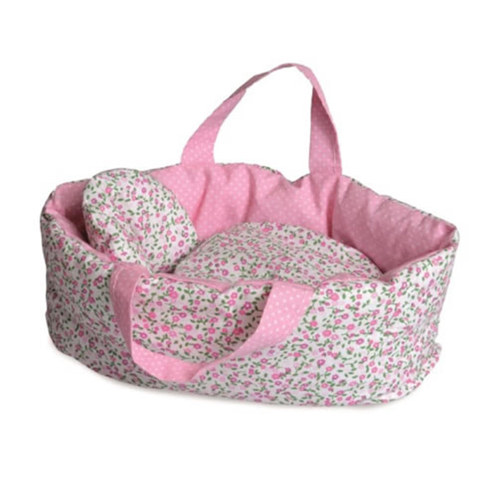 A virágos mózeskosár annyira kényelmes, hogy egyetlen baba sem tud ellenállni neki! Takaróval, valamint párnával van felszerelve. A mózeskosár anyaga kifordítható, így a színek megfordíthatók (külső virágok, belül rózsaszín vagy fordítva). Mosógépben 30°-on mosható.