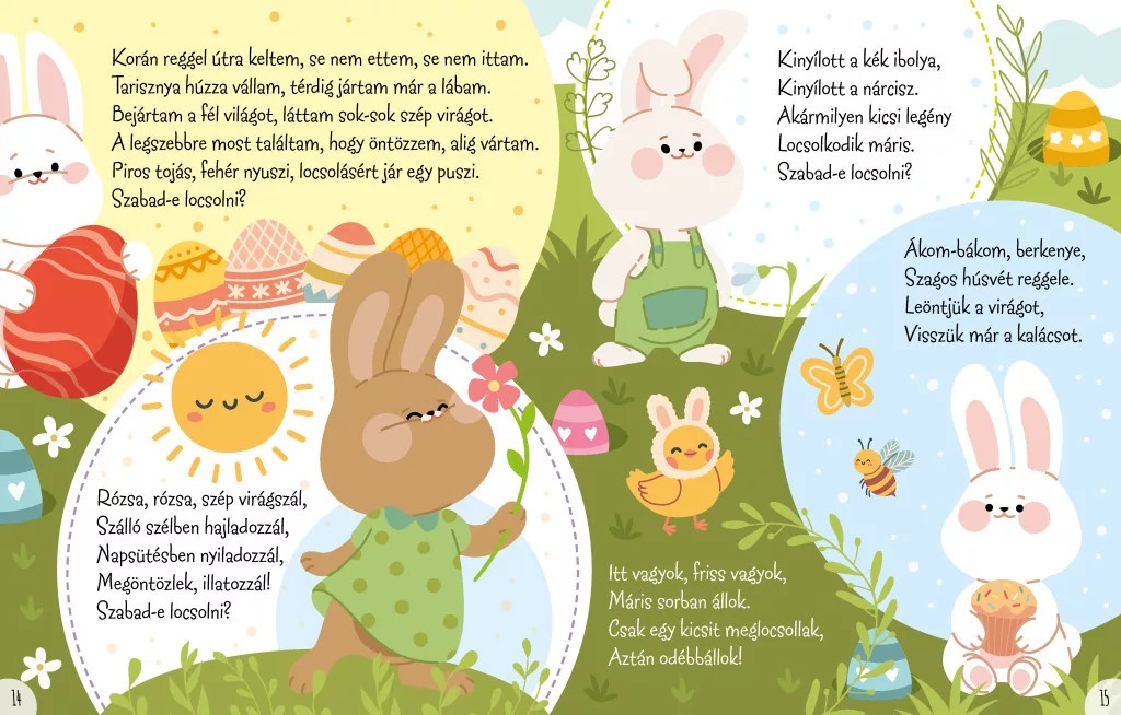 A mesék mellett a könyv 10 kedves húsvéti locsolóverset is tartalmaz, így a gyerekek játékosan készülhetnek a húsvéti hagyományokra, és akár a locsolkodáshoz is tanulhatnak rövid verseket.