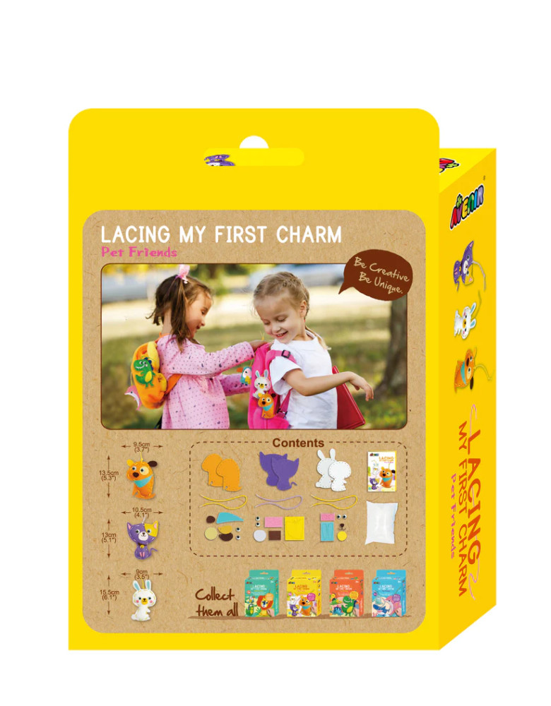 A gyerekek imádni fogják a plüssállatokat melyeket maguk alkotnak az Aveir My First Lacing Kit segítségével. Könnyű összefűzni az előre kilyukasztott darabokat a mellékelt fűzőkkel, majd hozzáadni a tölteléket, hogy egy imádnivaló állatát készítsetek.