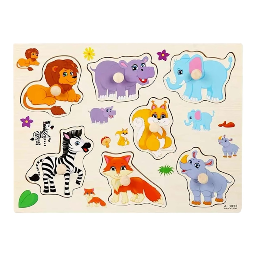 Fa ki-berakó, fafogantyús, vadállatos, 30x23 cm pvc csom.