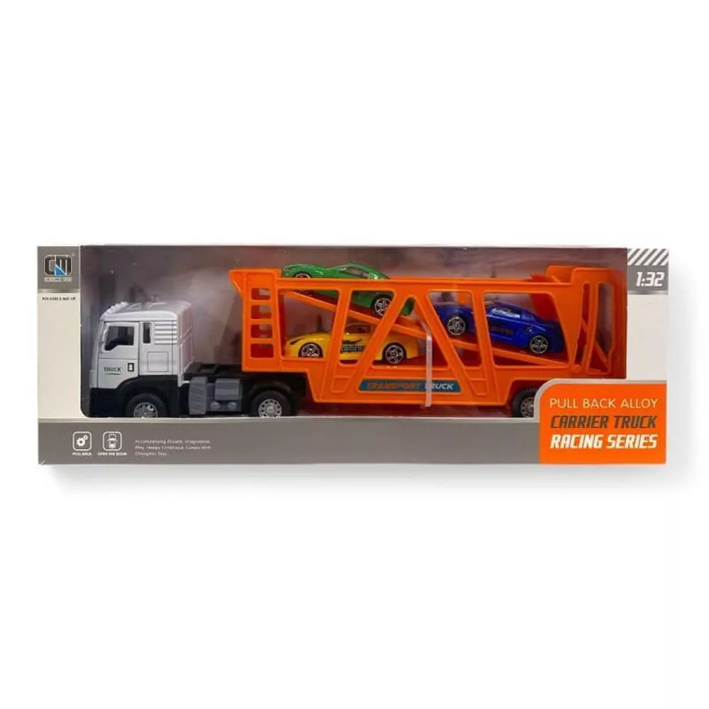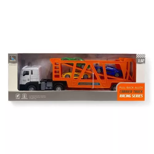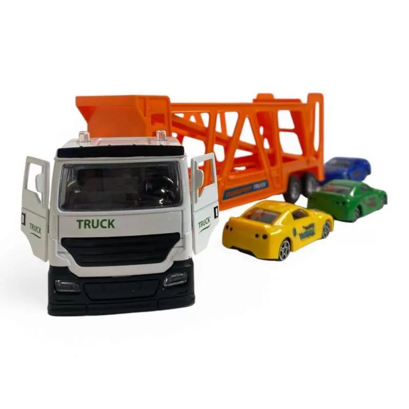 Fém autószállító játék, amely három különböző autót tartalmaz. A játék mérete 31x11 cm, és a hátrahúzós mechanizmusnak köszönhetően könnyedén mozgatható. Kiváló minőségű anyagokból készült, így tartós és biztonságos a gyermekek számára. Ideális választás a kis autórajongóknak, akik szeretnek különböző járművekkel játszani. Megrendeléskor megjegyzésben adja meg a kért színt!