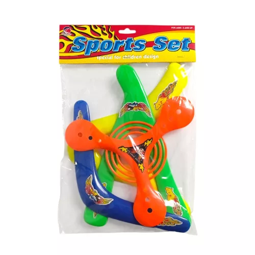 Frizbi klt., bumeráng, 4 db, 22x35 cm zacsk.