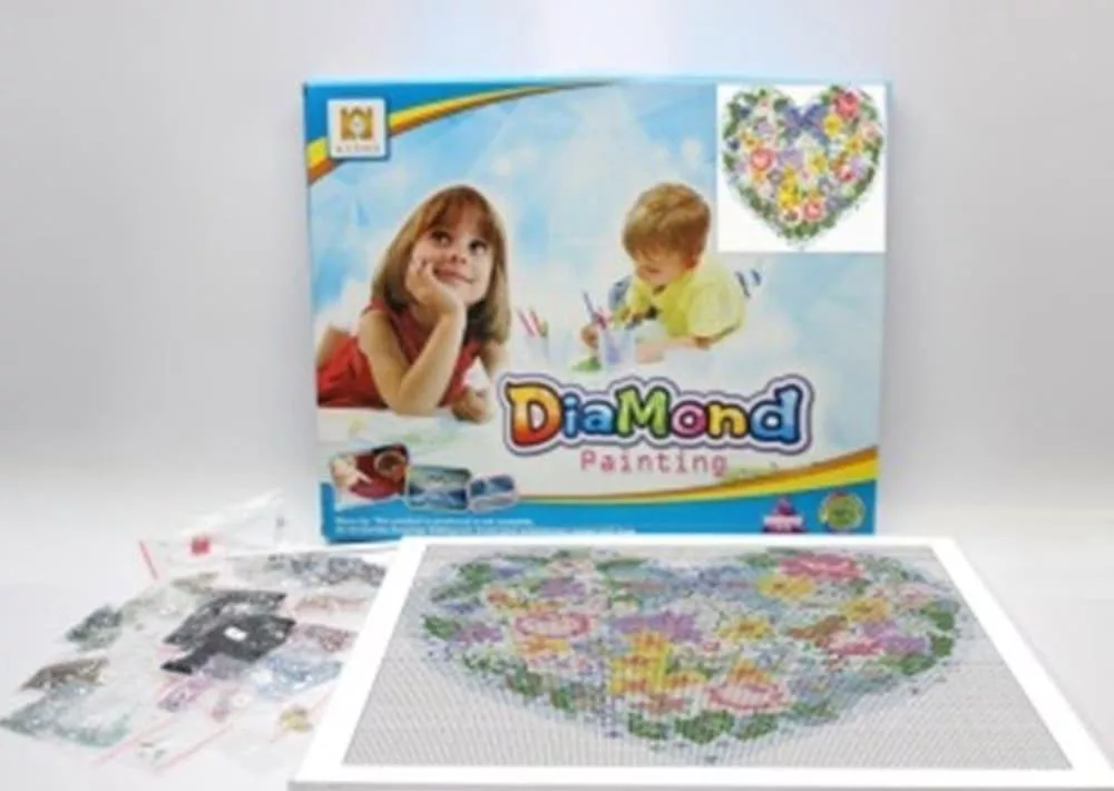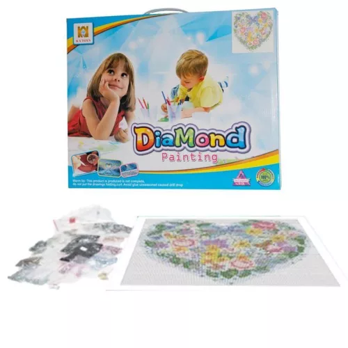Gyémánt kirakó készlet, virágos szív, 40x40 cm, dobozban.