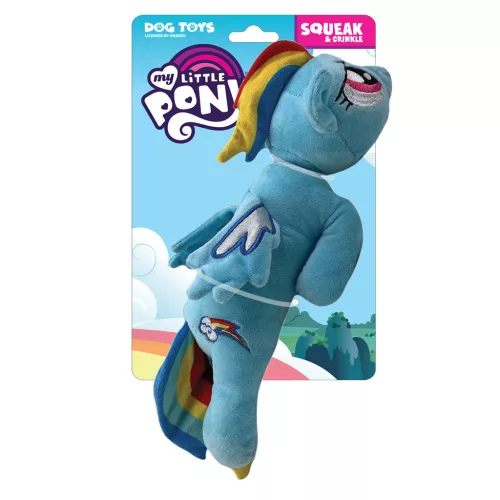 Ikonikus dizájn: ez a játék a My Little Pony sorozat kedvelt karakterének, Rainbow Dash-nek a motívumával nosztalgikus és játékos hangulatot hoz a kutyád játékgyűjteményébe. Tartalmaz egy sípolót, amely ösztönzi a játékot és aktívan tartja a kutyádat. Puha plüssből készült, amely kíméletes a kutyád fogaihoz és ínyéhez, de ugyanakkor elég erős a könnyű és közepes intenzitású játékhoz.