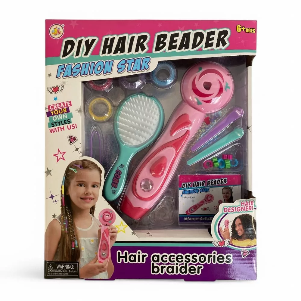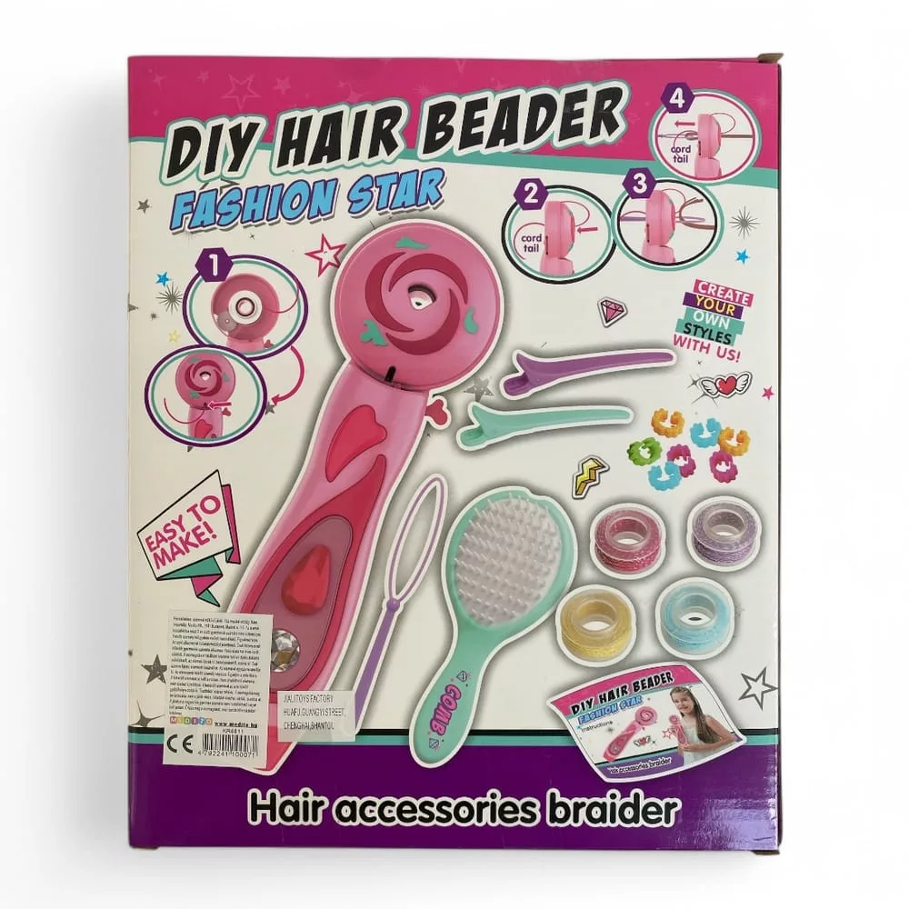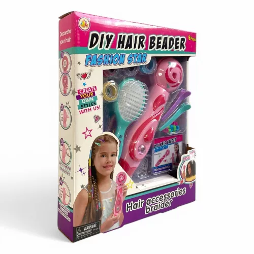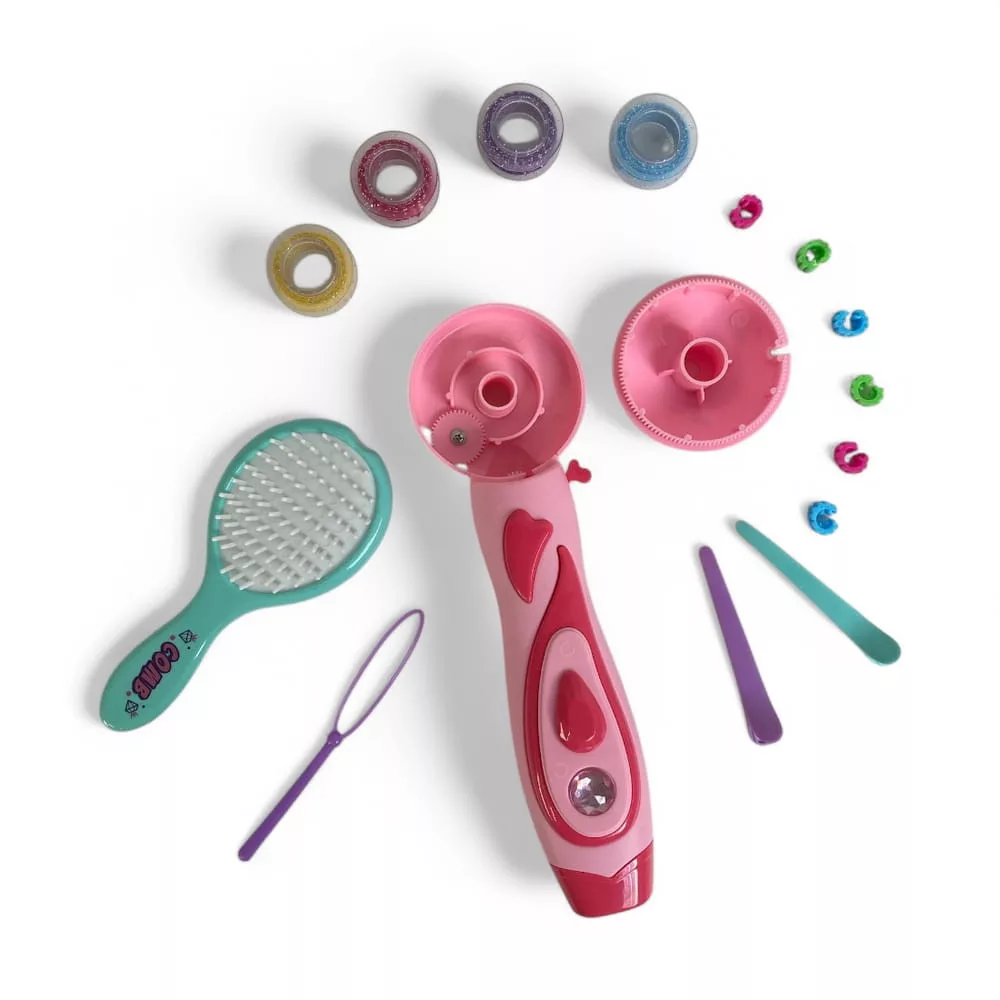 Hajdekoráló készlet: fonó eszköz, kefe, hajgumik - kreatív frizurákhoz.