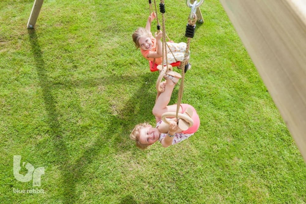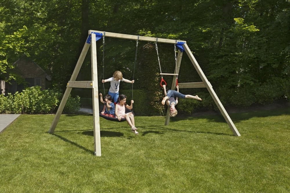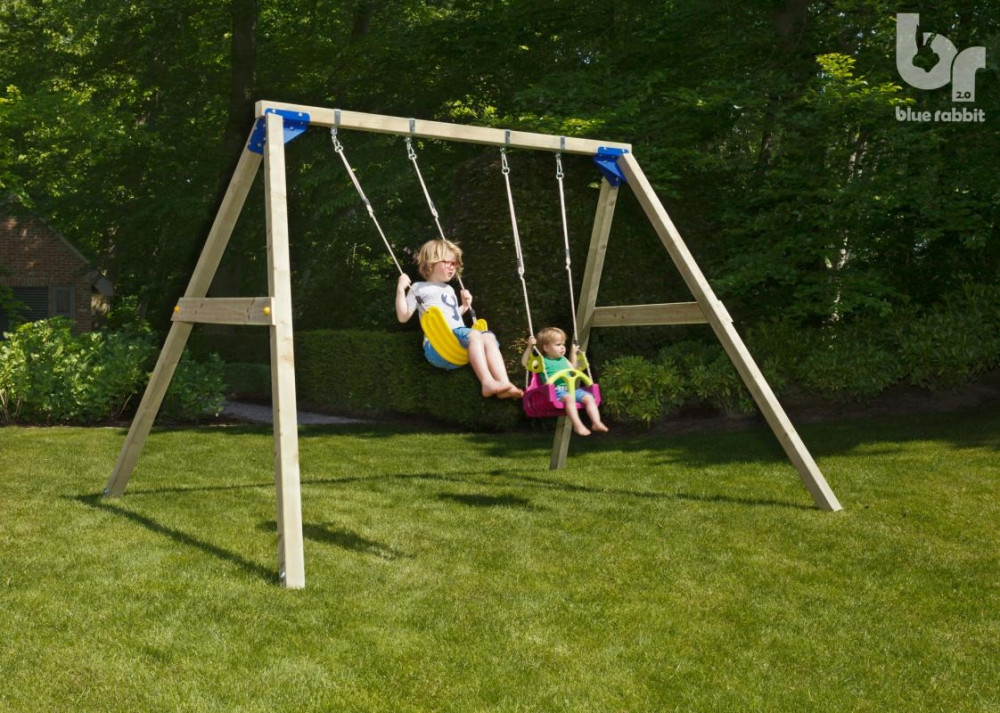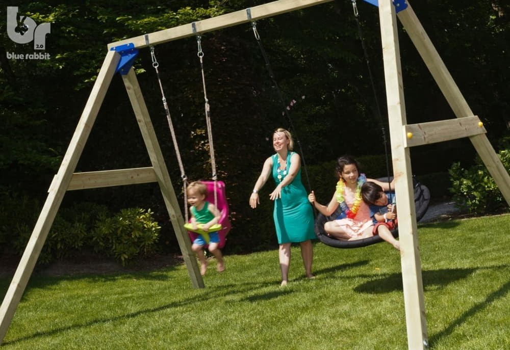 A Blue Rabbit Freeswing hintaállvány a gyerekek kedvenc játszótéri szórakozását szolgálja ki. Az állványhoz rögzíthető rengeteg féle hinta a legvidámabb perceket fogják elhozni a kertbe! Akár laphintával, bébihintával vagy trapézhintával is felszerelhető, de többgyermekes családoknak ajánljuk a fészekhintát vagy a kétszemélyes hintákat is.