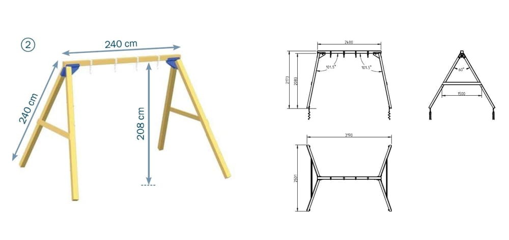A  Blue Rabbit Freeswing kerti játszótér hintaállvány ajándék vágással alap ára minden esetben tartalmazza az összeszereléshez szükséges egységcsomagot- csavarokat, vasalatokat,  betonozható földhorgonyt (benne a részletes, ábrákkal illusztrált vágási és szerelési útmutatóval), a faanyagot (szálanyagban méretre vágás és előfúrás nélkül). Az egységcsomag hintaülőkét nem tartalmaz, azt külön kell hozzá választani.