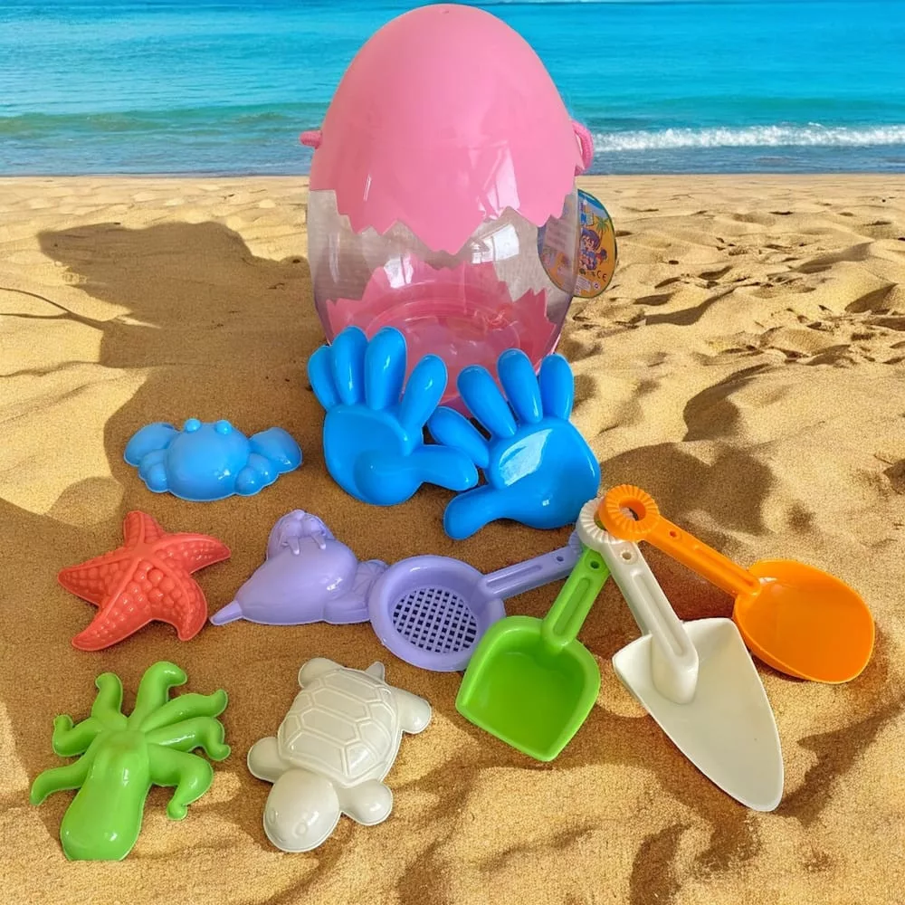 Homokozó készlet: 4 forma, 8 tojás alakú forma gyerekeknek.