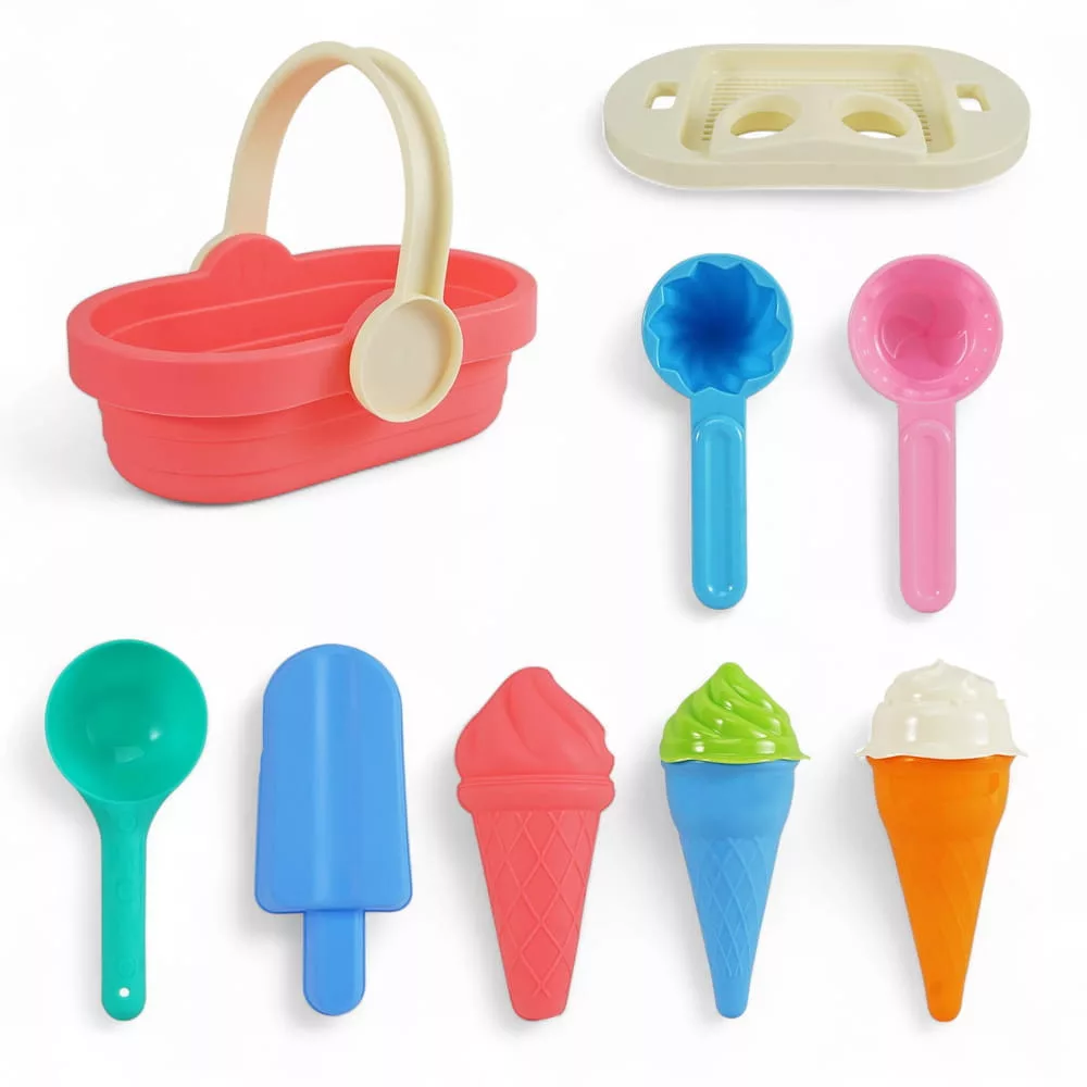 Homokozó klt., fagylaltos, kosár hordozóban, 2 szín, 22x19 cm hálós