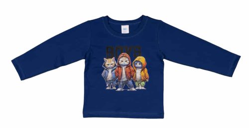 Hosszú ujjú fiú póló vagány cicák mintával