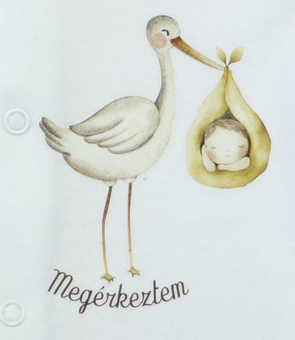 A kényelem és a stílus tökéletes kombinációját kínálja ez a rugdalózó, amelyet gólya mintával díszítettünk. vékony pamut, bababarát anyagból készült, kényelmes viseletet biztosítva egész napra. Elején patentos, így megkönnyíti a picik öltöztetését. A lába közötti patentos megoldás a peluscserénél nagy segítség. Jól mosható, szín- és formatartó anyagból készült.