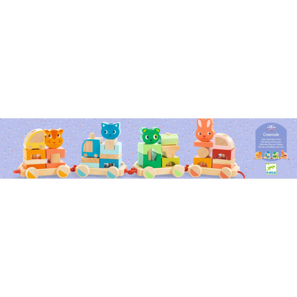 Djeco Húzható- és építőjáték - Kisvonat, 34 db-os - Créaroule, my little train