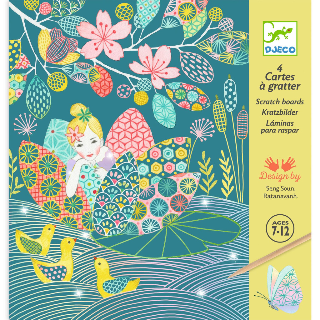 4 karcképből álló sorozat  irizáló színjátszással, tükröződésekkel egy kellemes, meglepetésekkel teli sétát ábrázol a tó partján. A gyermek a művész által elképzelt mintákat reprodukálja úgy, hogy a felületet a fa karctollal megkarcolja és így fokozatosan, mintegy  varázsütésre feltárulnak az illusztrációk!