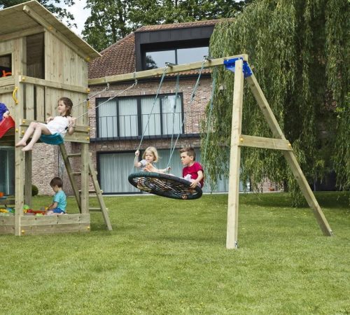 A Blue Rabbit tornyok remekül kombinálhatóak a @swing hinta modullal, amelyhez bármilyen hinta megfelelő választás lehet, akár a kisebbeknek, akár a nagyobbak számára. A hinta modulhoz tartozó vasalatok rendkívüli stabilitást nyújtanak.